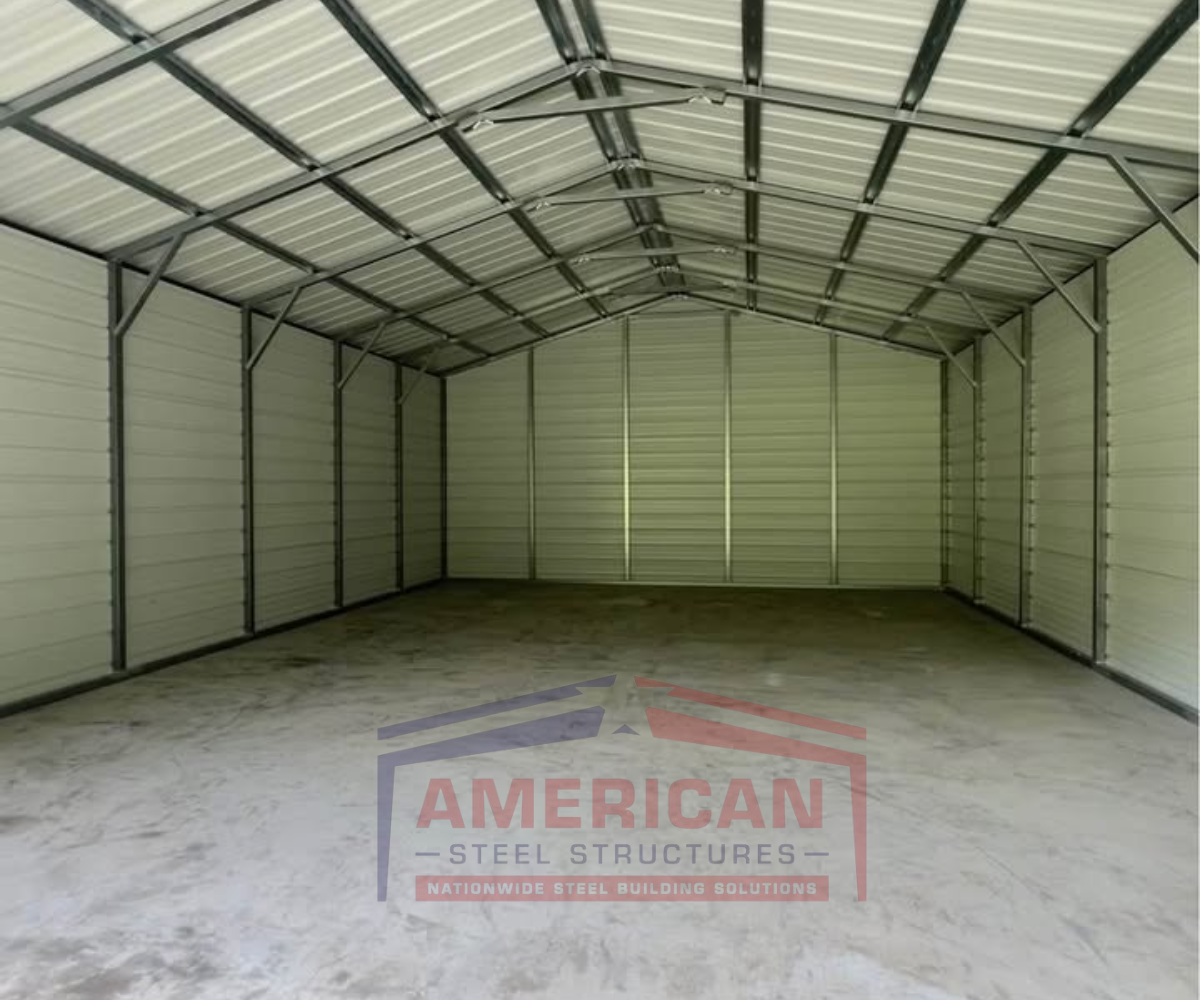 Need a durable, stylish two-car garage? Look no further. This 24x25x9 steel garage is built to last and designed for convenience—perfect for parking vehicles, storing boats, ATVs, or adding secure extra space.