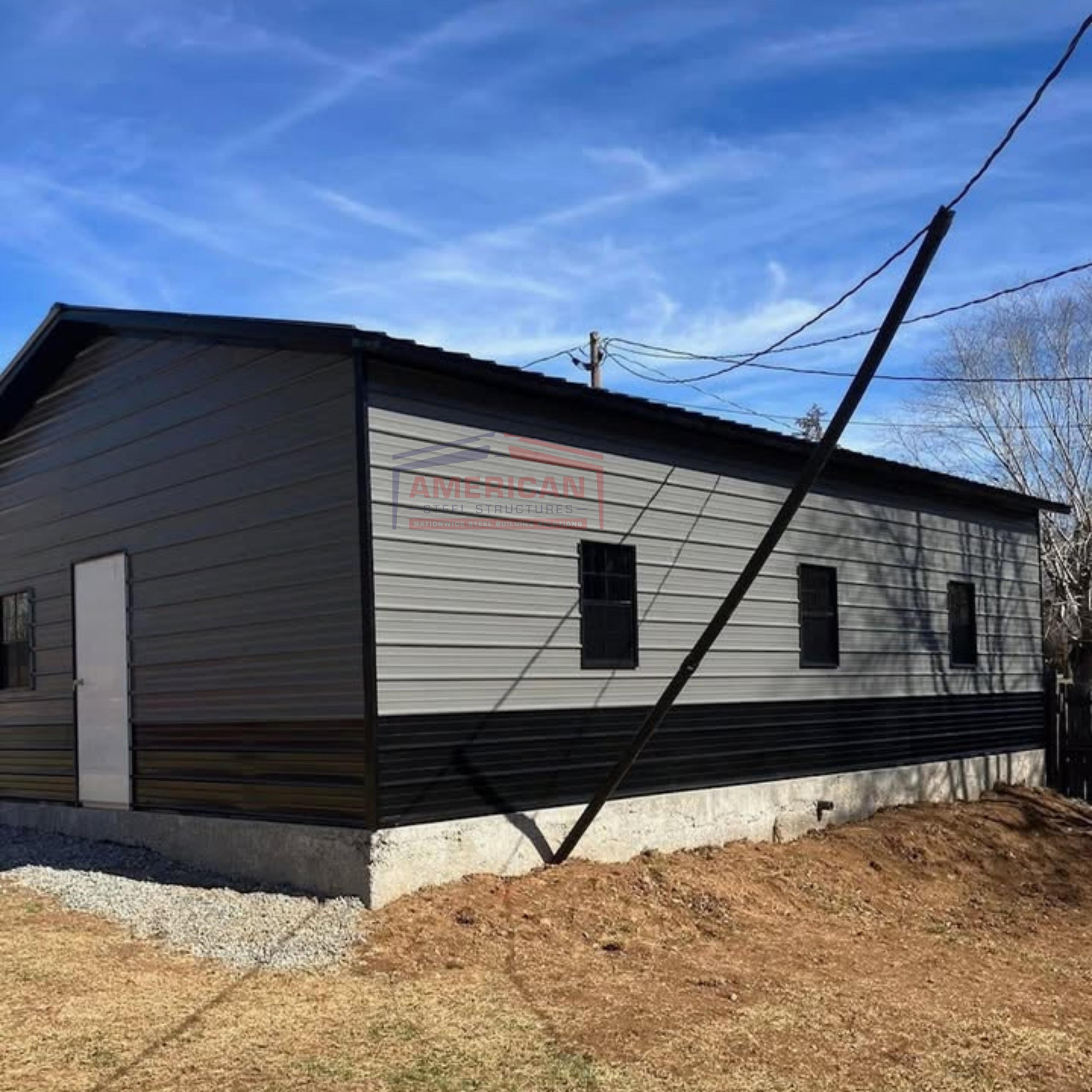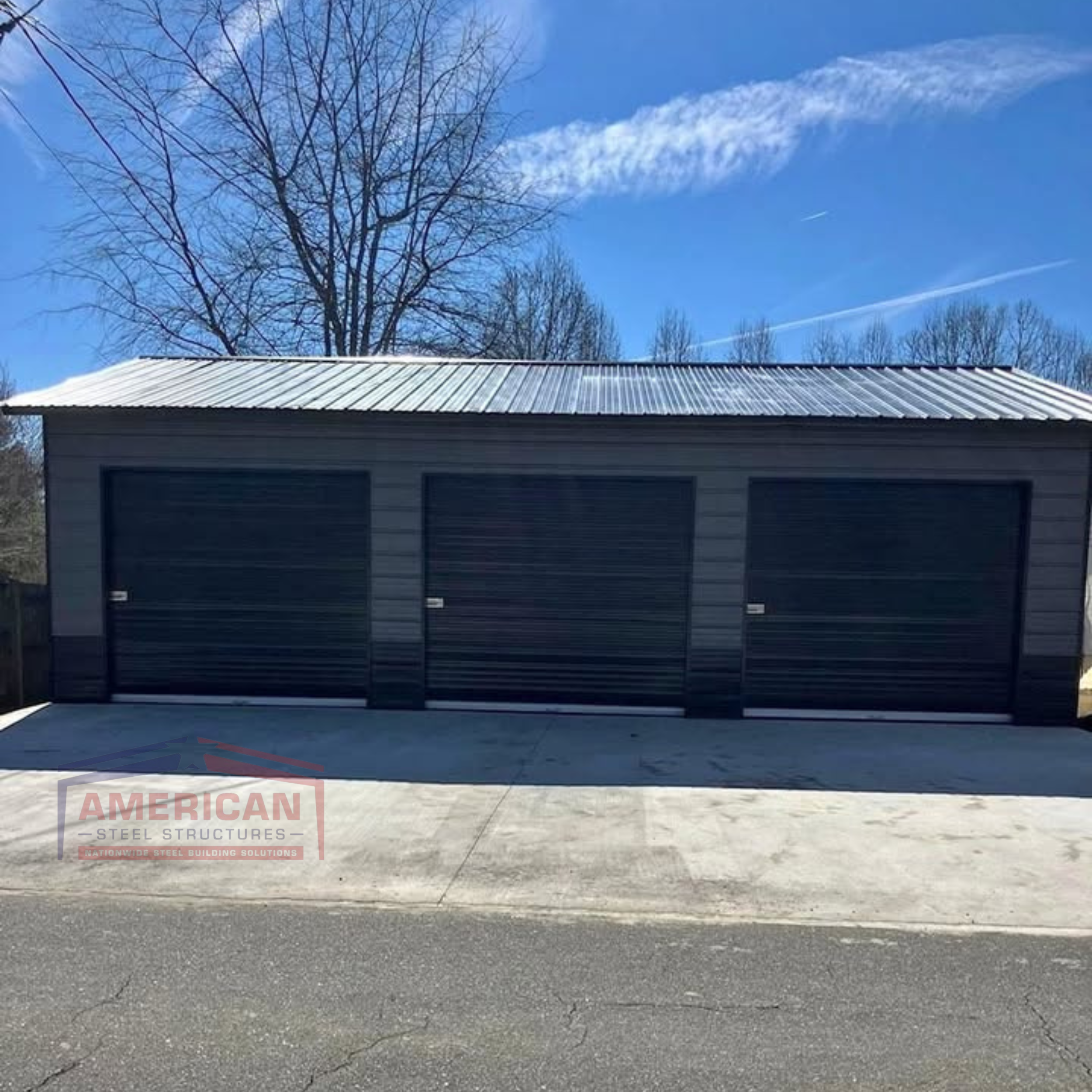 Protect your vehicles, store tools, or create the perfect workshop with this 24x35x10 steel garage. Featuring (3) 9’x8’ roll-up garage doors, (1) walk-in entry door, (4) windows for natural light, and strong steel framing on 5’ centers, this building is designed for durability and functionality.